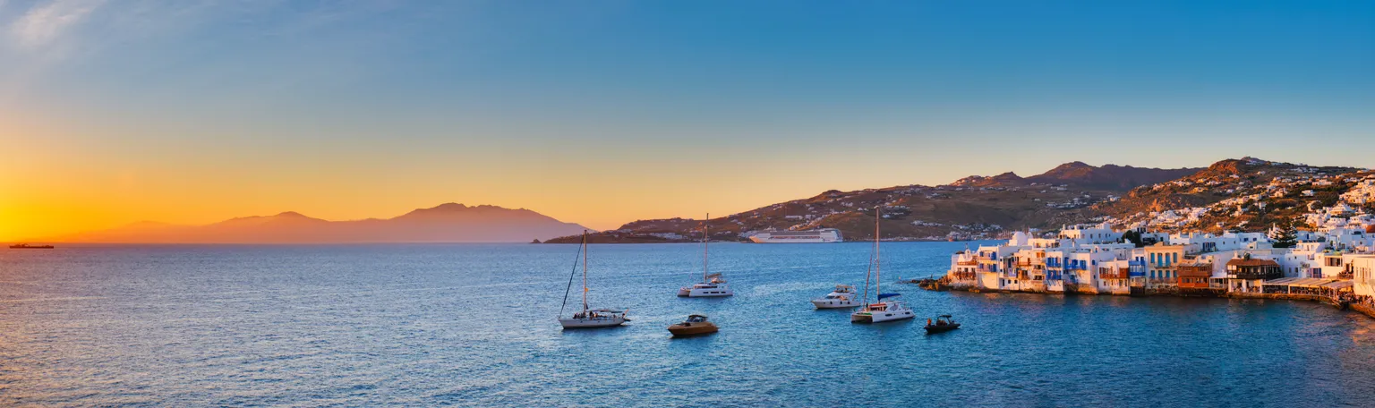 Einst besiegte Herkules gewaltige Riesen und warf ihre steingewordenen Körper ins Meer. So entstand laut der griechischen Mythologie die Insel Mykonos. Mit ihren weiss-blauen Häuschen, den engen Gassen und vielen Tavernen verkörpert die Insel in der Ägäis Griechenland, wie es im Buche steht.